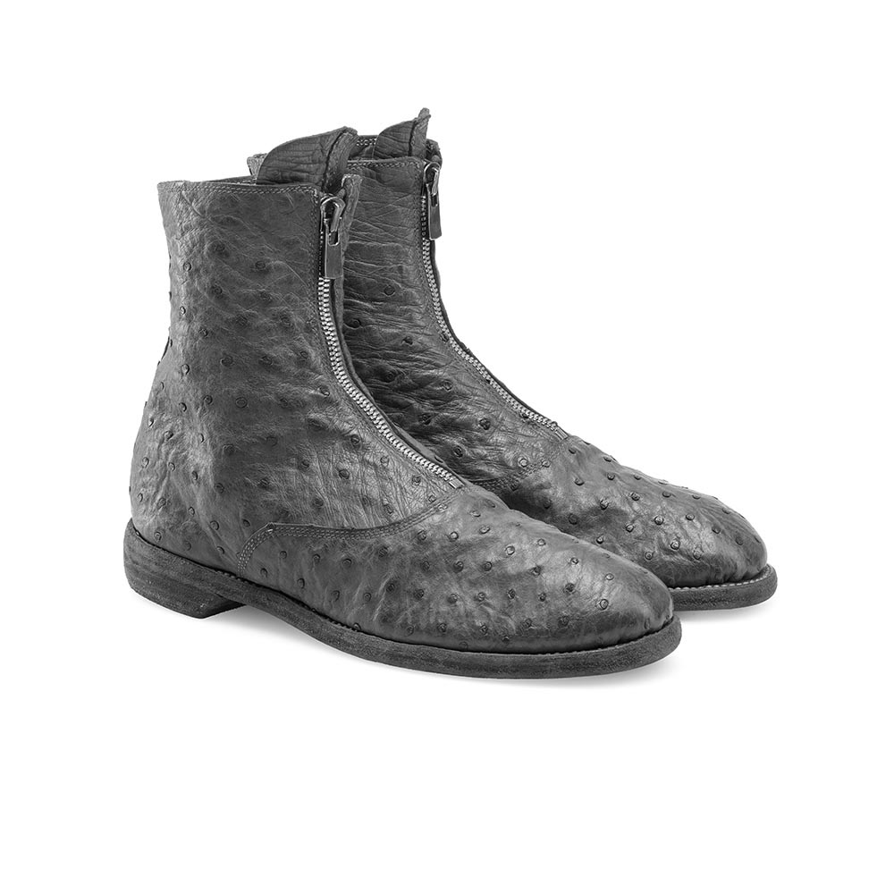 Ostrich Leather Front Zip Ankle Boot- Goodyear welt construction